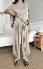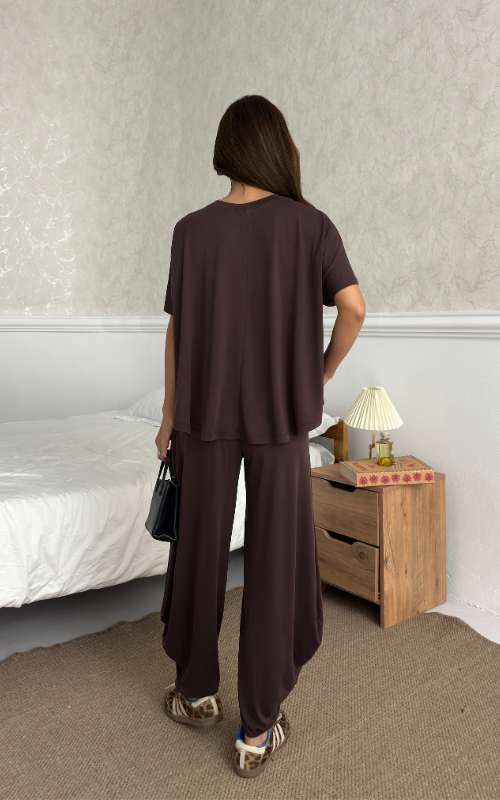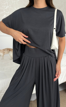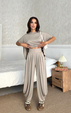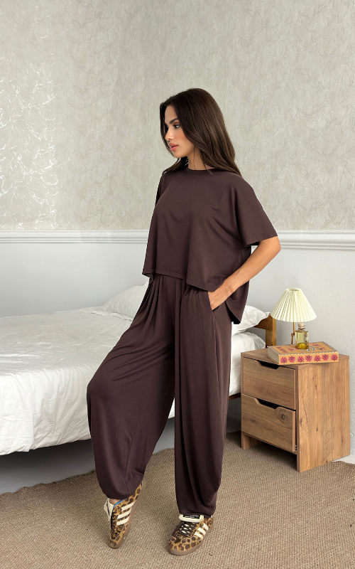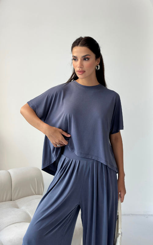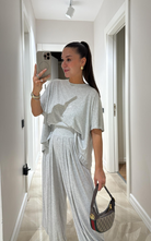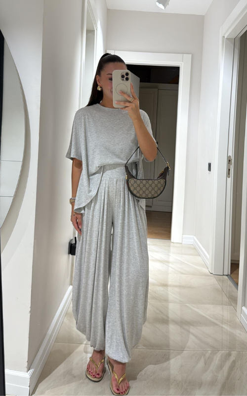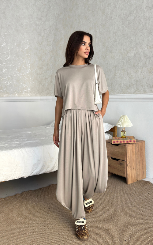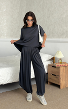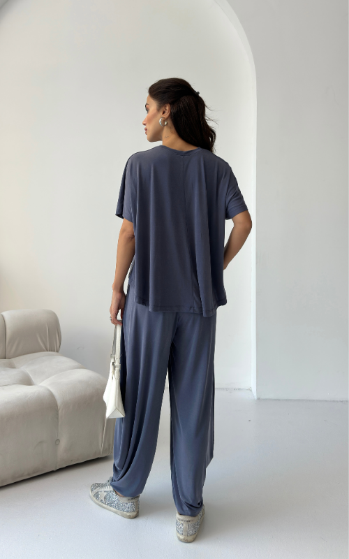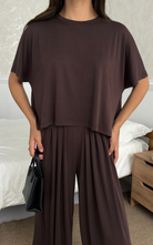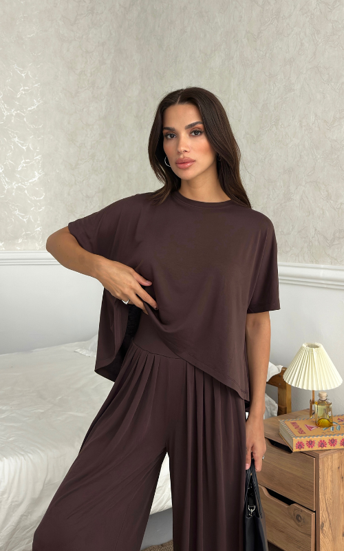 Made of soft fabric, the Tango Set features a relaxed-fit short-sleeve top and the matching high-waisted pants are designed with pleated front panels, side pockets and a cuffed hem.