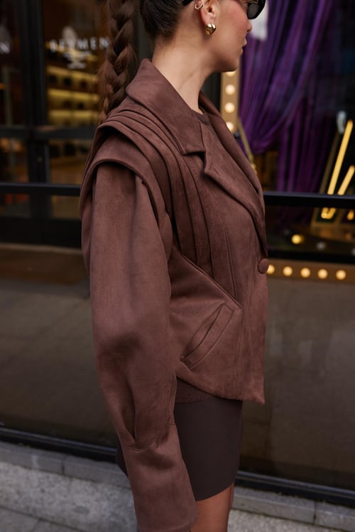 Elevate your look with our Velvet Wave Jacket. Featuring a sleek single button and elegant wave details on the shoulders, this luxurious piece adds a touch of glamour to any outfit!