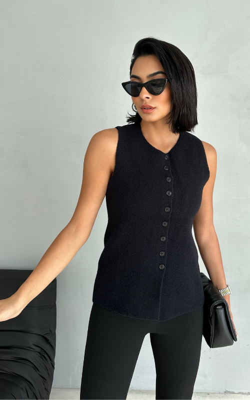 Crafted with precision and adorned with exquisite buttons, our Vero Vest features premium fabric and classic neckline to highlight your feminine side.