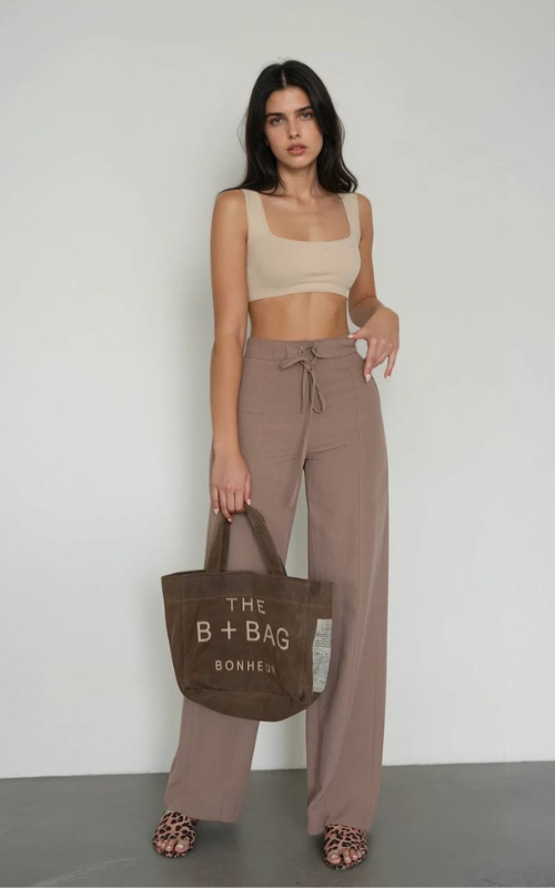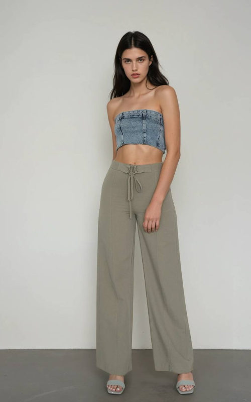 The Vienna Pants feature a straight-cut design with a single front line detail and a built-in adjustable belt with ties, combining clean structure with modern versatility.