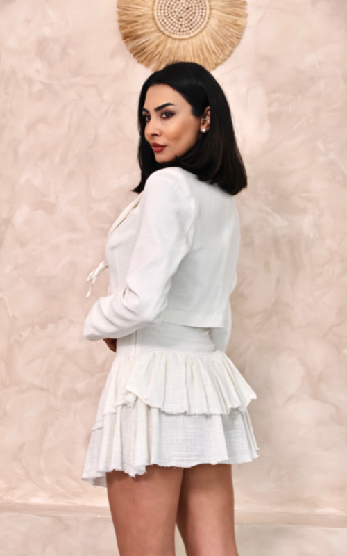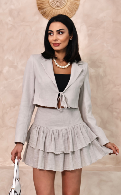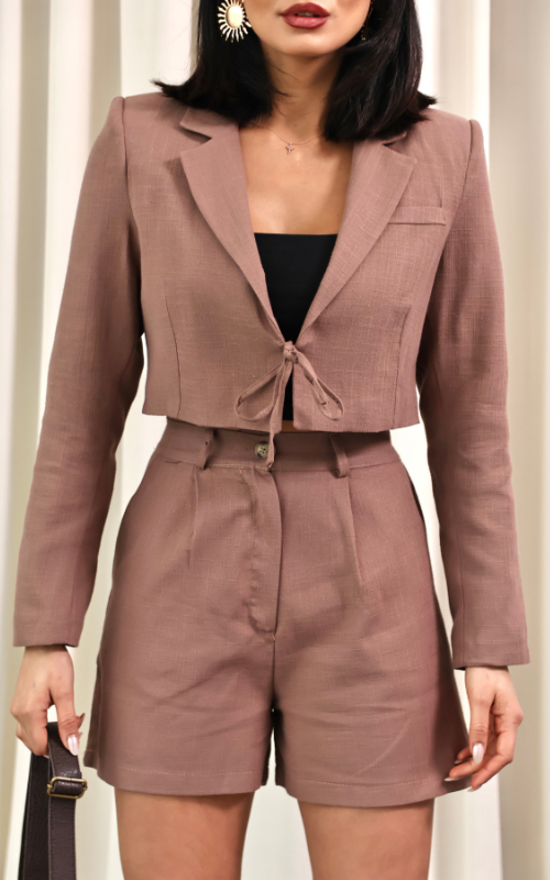 Tailored to perfection, this premium cropped blazer features a sleek single front tie and faux front side pocket for that effortlessly polished look.