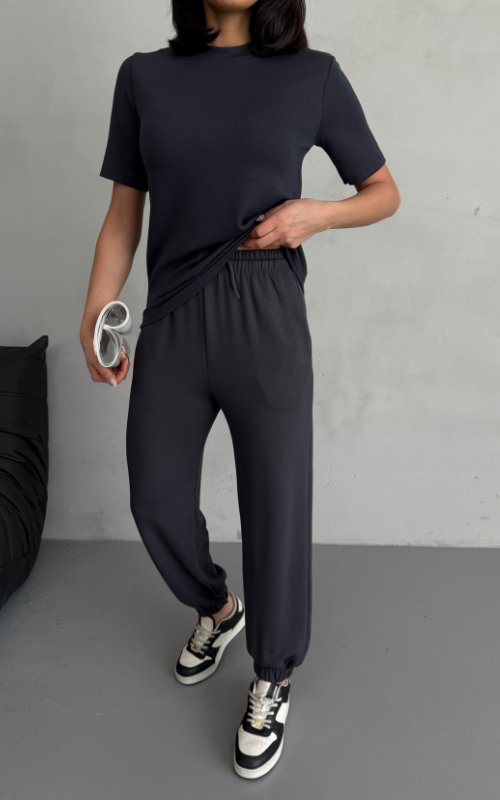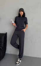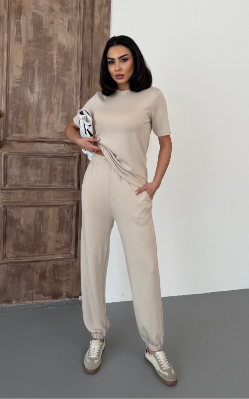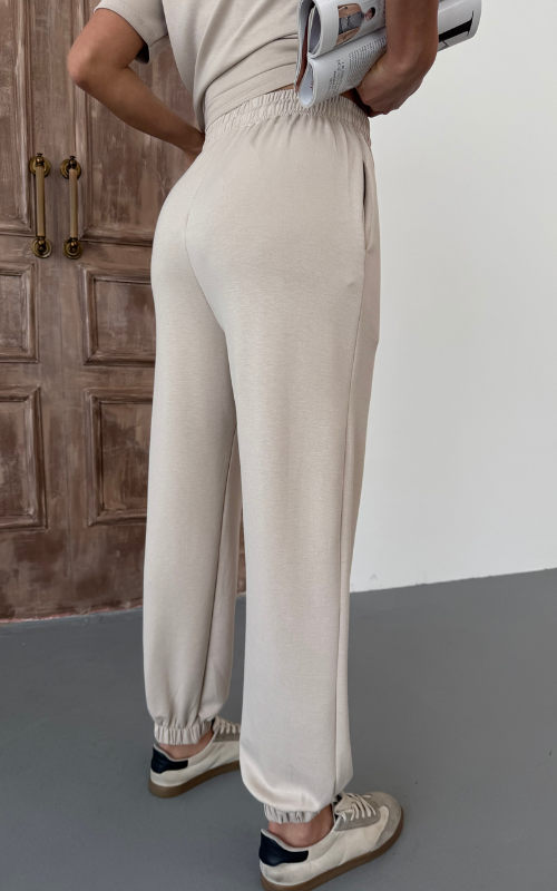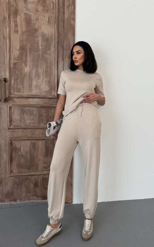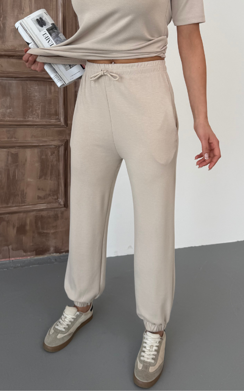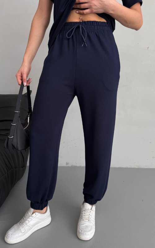 Our Young Pants offer a timeless tapered fit, featuring an elasticated waistband with a drawstring and a cinched ankle design, combining comfort and style effortlessly.
